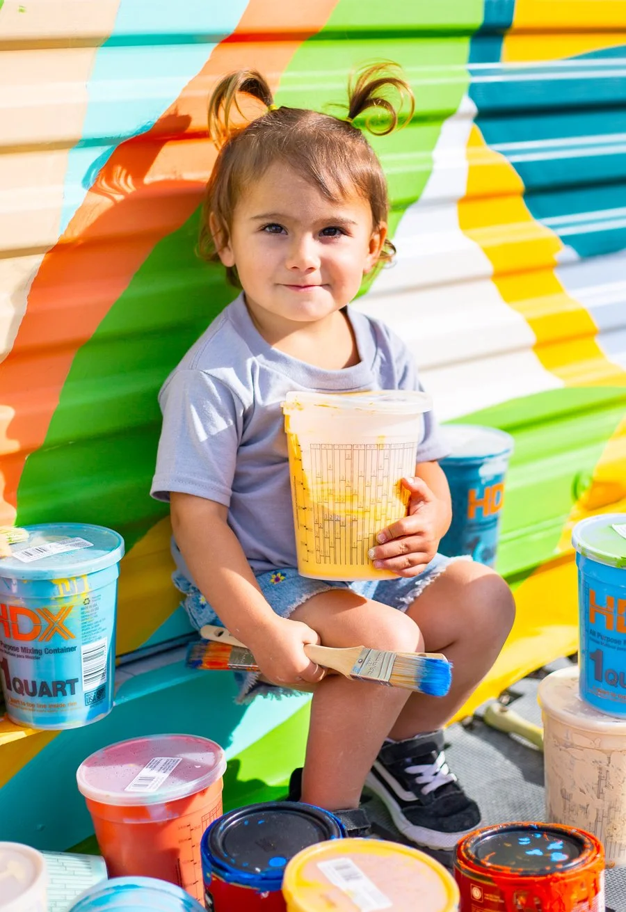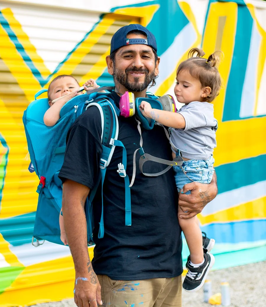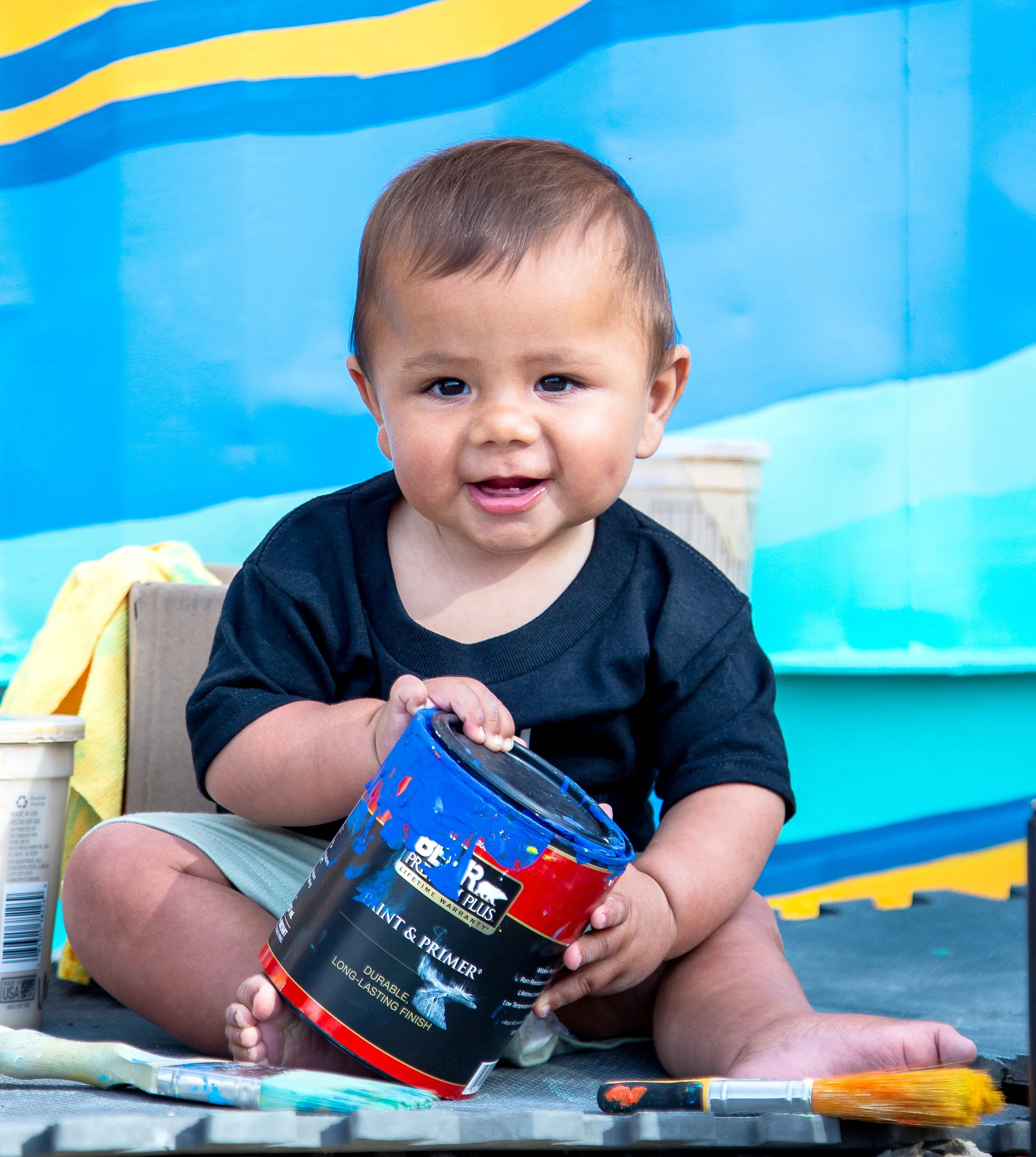 Meet Zenyth, the newest (and tiniest) member of the crew. This SoCal babe is already making a name for himself as our resident lover boy and certified heart-melter. While technically mom and dad’s assistant on mural days, his main responsibilities include supervising from the stroller, taste-testing paint brushes (don’t worry… we try to stop him), and demanding cuddle breaks from mom.